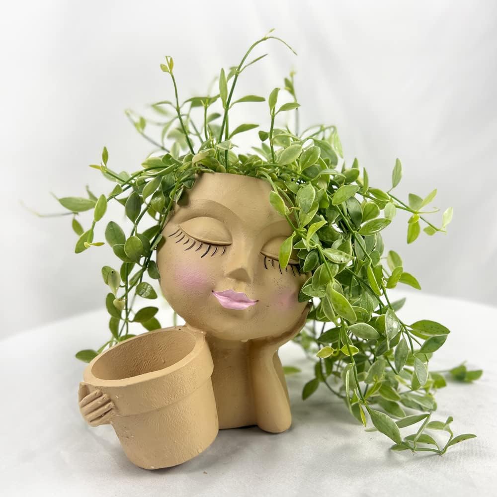 OUDE HOWER Face Planter Head PlanterDouble Flower Pots in